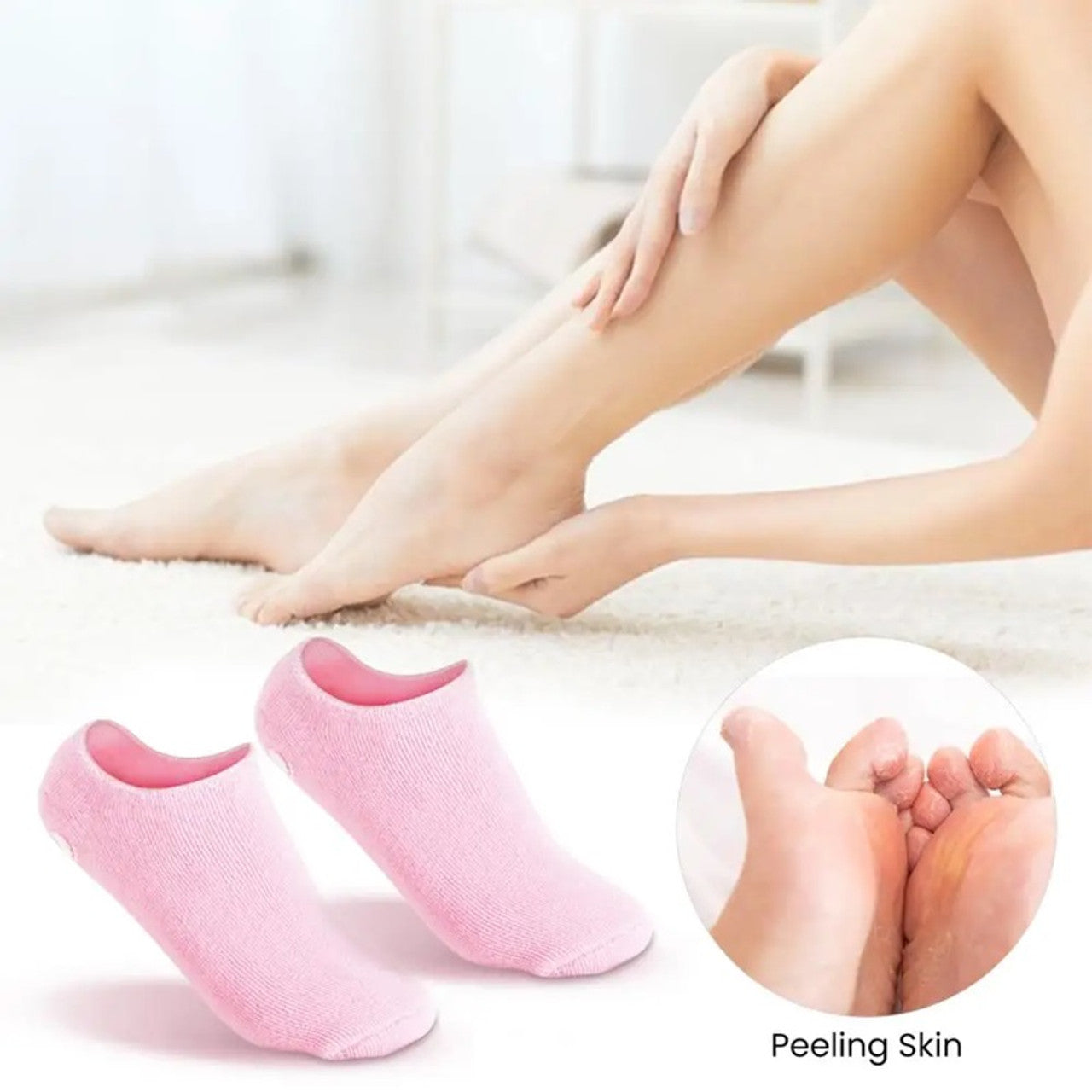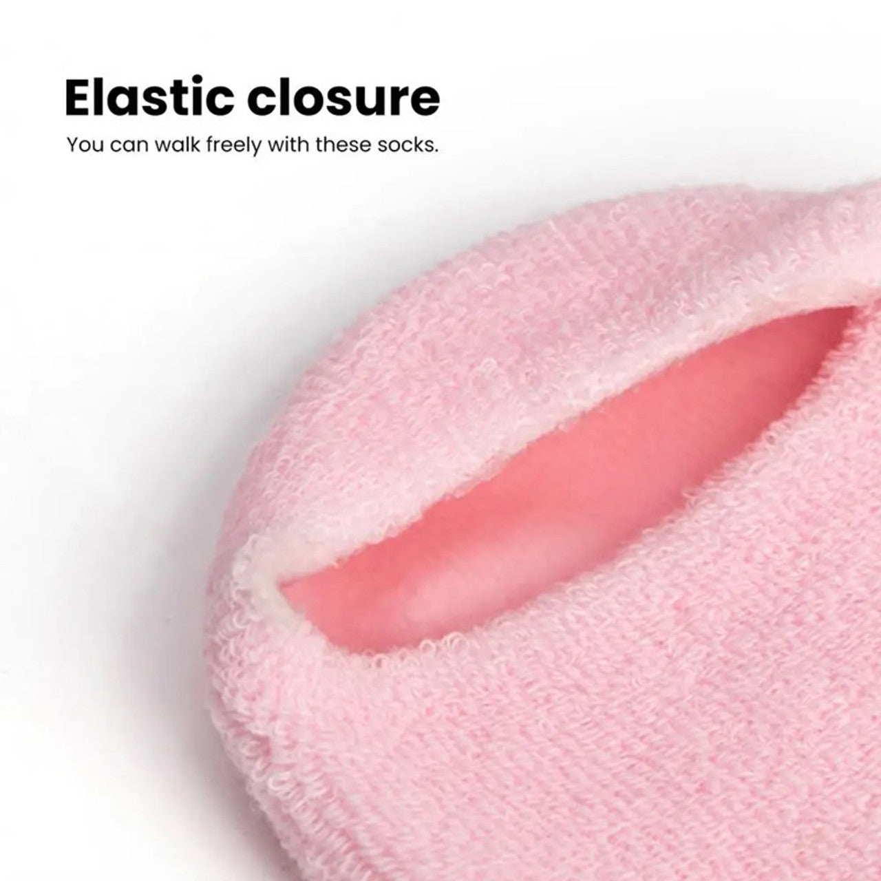 Pair of Reusable SPA Silicone Gel SocksThe full design of our moisturizing socks can moisturize your whole feet. Hydrates and softens hard, dry, rough feet, calluses, heels, toes, and cuticles.Featured non-slip dots on the bottom of gel socks, it can offer better grip for improved stability and balance so that you can have better control of your body movements, avoid tumble and injuries.Moisturizing socks are made of super soft blend and cotton, durable, high quality medical-grade gel.Gel socks are washable and reusable for continuous comfort.Used together with body lotion or foot cream, creating better effect, Wear at least 2-3 times per week. Daily use recommended. Material: Cotton+SiliconeColor: pinkSize: One size(elastic)Quantity: 2PCS/PairPackage Includes: 1 Pair Moisturizing Socks Washing precautions:1. The washing temperature should not exceed 30 ℃2. Do not machine wash, bleach, iron, dry clean or dry3. After drying, store it on a flat surface without twisting4. Avoid direct sunlight and hang in a cool place5. If there is gel adhesion after washing, talcum powder can be applied Usage:1. Thoroughly clean both feet and wipe off residual moisture2. Apply foot cream, Wear moisturizing gel socks3. After 20-30 minutes, remove the socks and you will notice that the foot skin is noticeably tender and smooth
